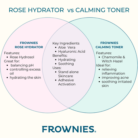 Choosing between Frownies Calming Toner and Frownies Rose Water Hydrator comes down to personal preference regarding your unique skincare needs. Both offer exceptional hydration and skin benefits, making them valuable assets as facial toners in your skincare arsenal.